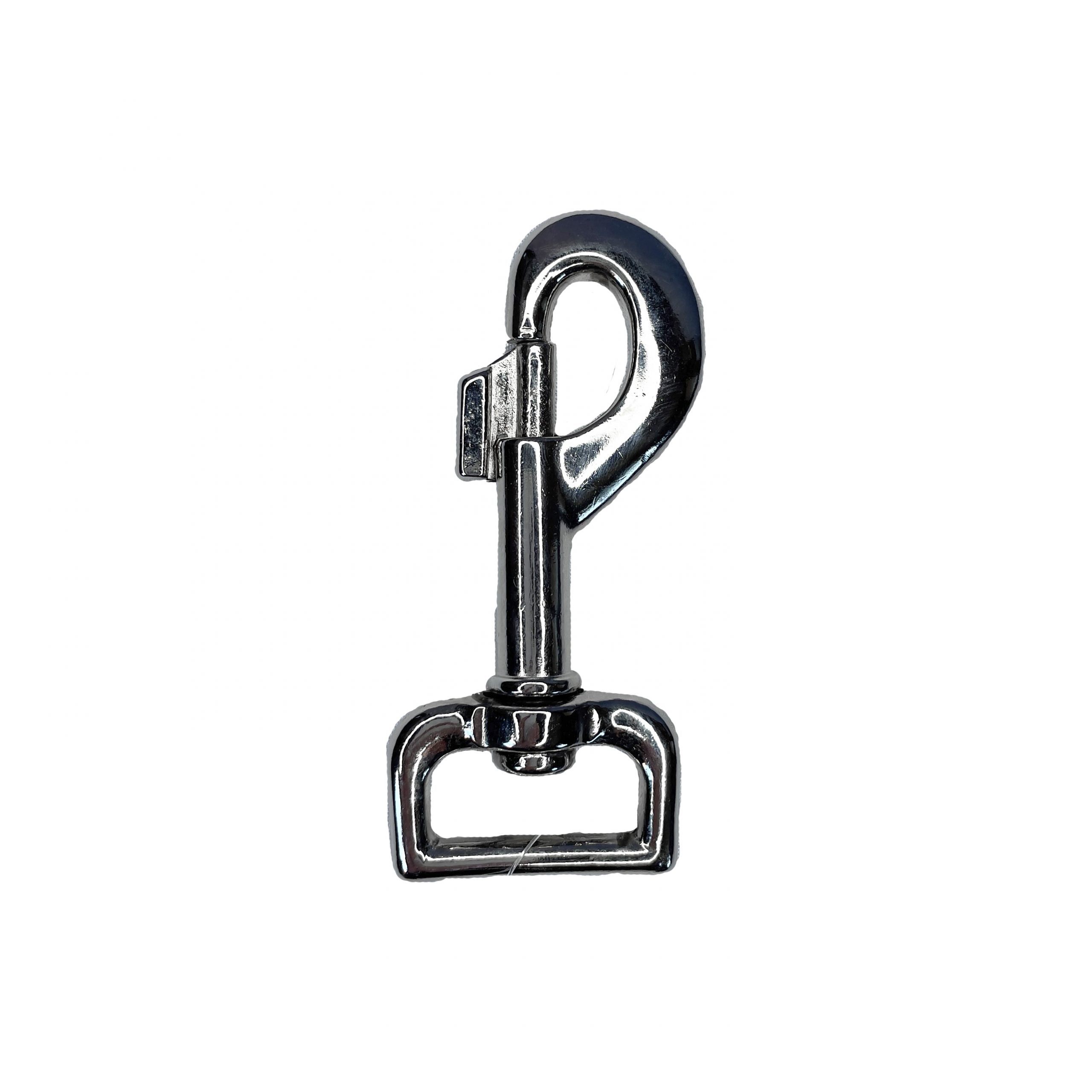 Die cast trigger clip with square eye, 95mm total length. Good for use with leather.