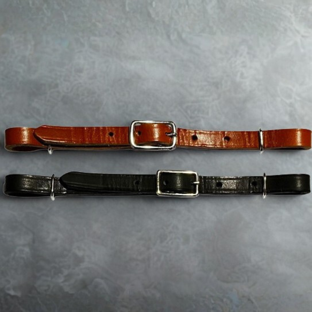 The leather Curb Strap attaches to the bridle bit bit with a buckle fastenings. There are 6 holes for adjustment. Maximum length 9.25" / 23cm.